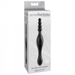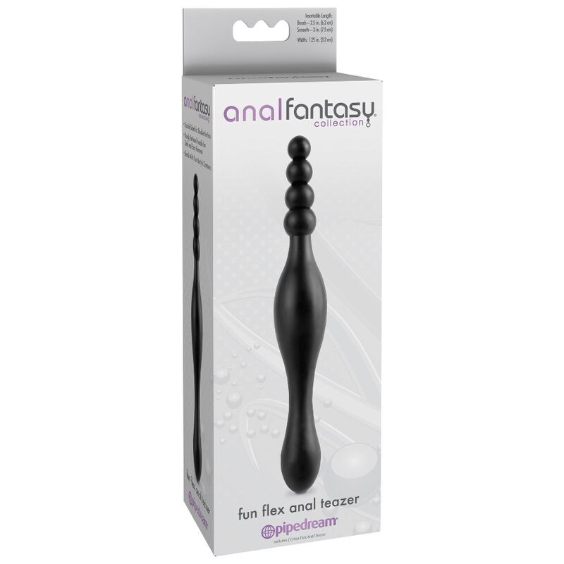 El Fun Flex Anal Teazer de la línea Anal Fantasy es perfecto para quienes desean adentrarse en el mundo de la estimulación anal. Con dos extremos diseñados para el máximo placer, este dildo flexible cuenta con un eje cónico suave y un eje de cuentas que facilita una entrada gradual, comenzando con una punta de 1 cm que se expande hasta 2 cm. Su diseño unisex y libre de ftalatos asegura seguridad y comodidad. Con una longitud de 13,7 cm y un diámetro máximo de 3,3 cm, el eje flexible se adapta a los contornos de tu cuerpo para alcanzar los puntos más sensibles. Además, cada extremo actúa como un mango robusto para un manejo seguro y fácil. Experimenta sensaciones intensas al extraer el Fun Flex Anal Teazer en el clímax para un orgasmo explosivo. La línea Anal Fantasy está diseñada para la máxima satisfacción anal.