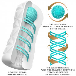 El masturbador Victoria Cecil de Pretty Love es una herramienta compacta y reutilizable, perfecta para una estimulación intensa. Su diseño cuenta con una espiral giratoria y una bola de estimulación que aporta sensaciones únicas durante la penetración. La textura interna está pensada para masajear el pene de manera dinámica, adaptándose a cualquier tamaño gracias a su elasticidad. Fabricado en TPR termoplástico, es completamente impermeable, ideal para usar en la ducha o la bañera, y su tamaño lo convierte en el compañero de viaje perfecto.