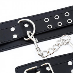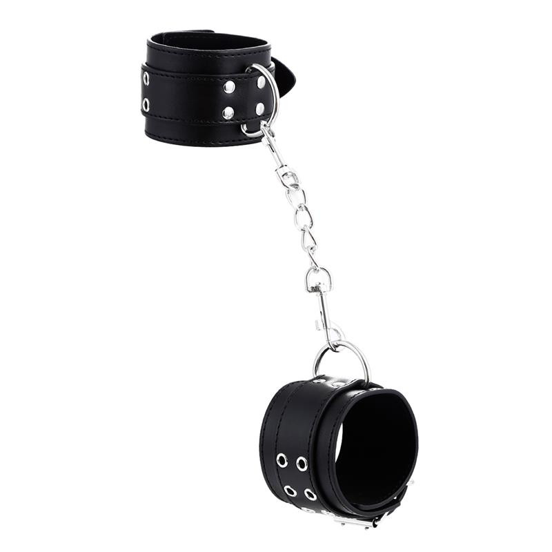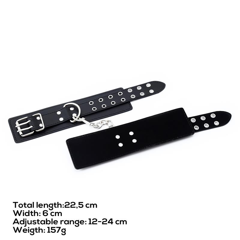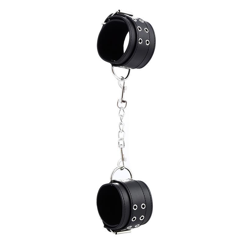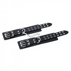 Esposas ajustables con doble hebilla y cadena desmontable, diseñadas para juegos BDSM seguros y controlados.