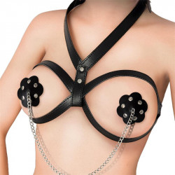 Pezoneras en forma de flor con cadena y detalles de tachuelas, ideales para juegos sensuales y atrevidos.