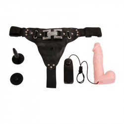 Disfruta de un arnés con dildo realista y vibración, controlado a distancia.
