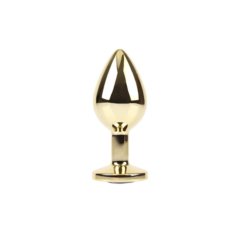 Elegante plug anal dorado con una joya en forma de corazón. Su diseño seguro y cómodo lo hace ideal para principiantes y amantes del placer anal.