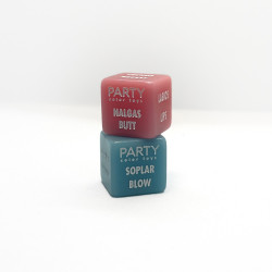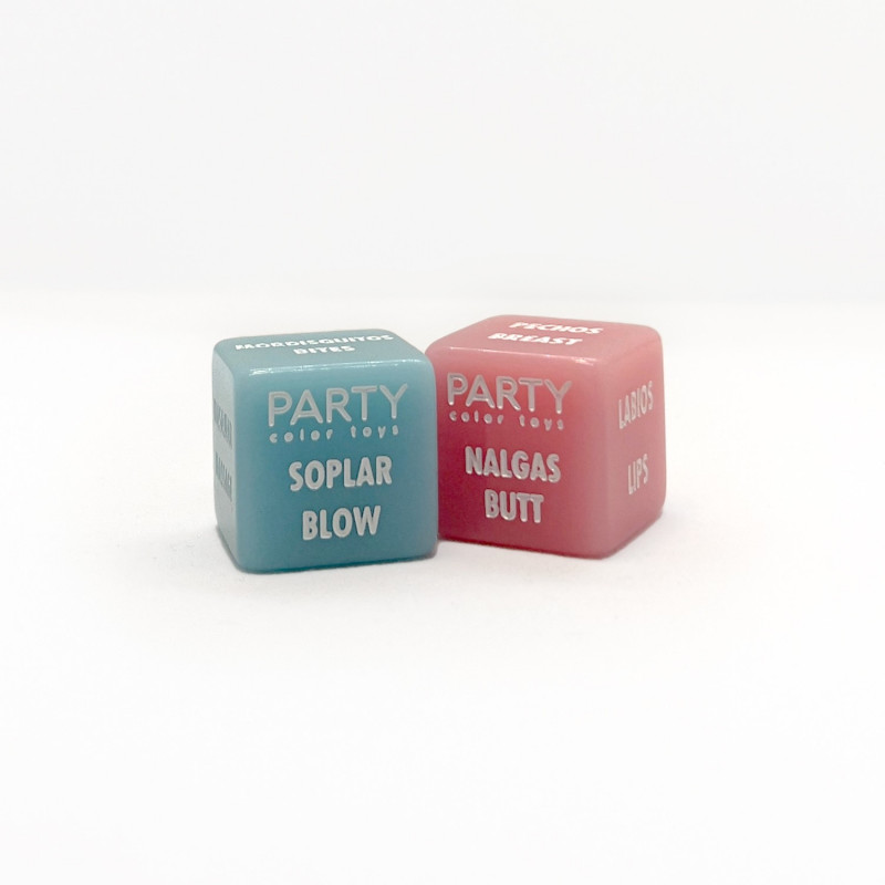 El dado rosa indica zonas del cuerpo como labios, cuello o entrepierna, mientras que el azul sugiere acciones sensuales como acariciar, morder o masajear. Solo lanza, interpreta y actúa… ¡la diversión está garantizada!