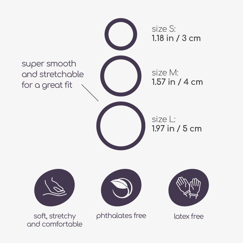 Potencia tu rendimiento y prolonga el placer con este set de 3 anillos elásticos de silicona en distintos tamaños.