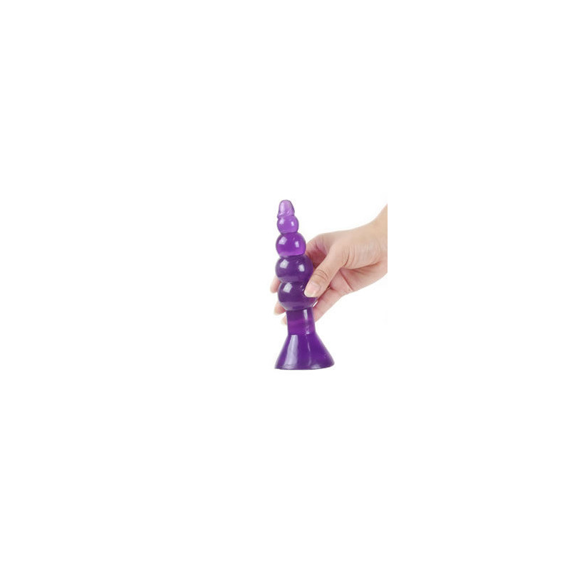Plug anal de 17 cm con textura ondulada, ventosa fuerte y material gelatina suave para una dilatación cómoda y progresiva.