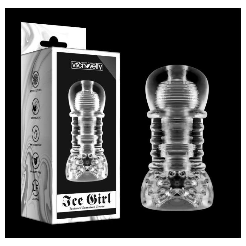 Masturbador Transparente Texturizado Ice Girl – Efecto Ondas y Círculos
