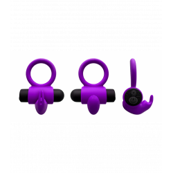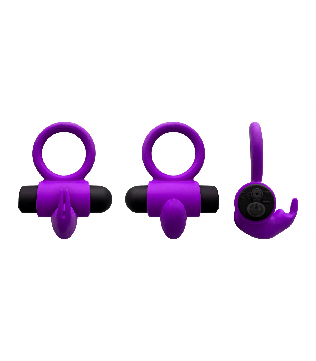 Anillo Vibrador Recargable E9 Morado con Estimulador de Conejito
