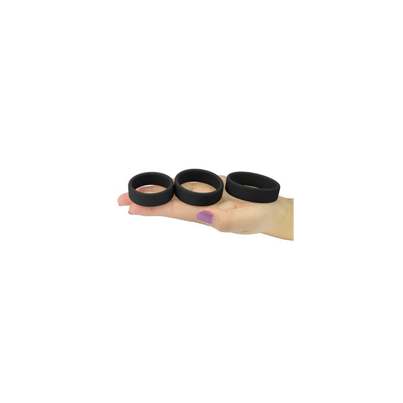 Un conjunto de anillos para el pene con una forma clásica en forma de donuts. Cuenta con unos materiales en silicona elásticos y flexibles, perfectos para aumentar la comodidad y la talla.