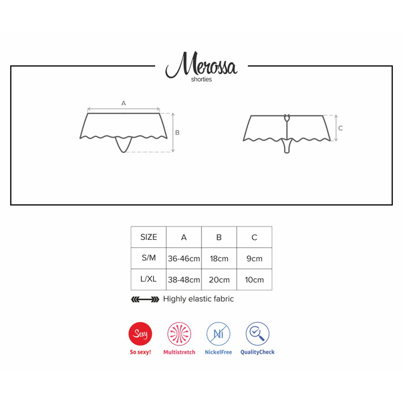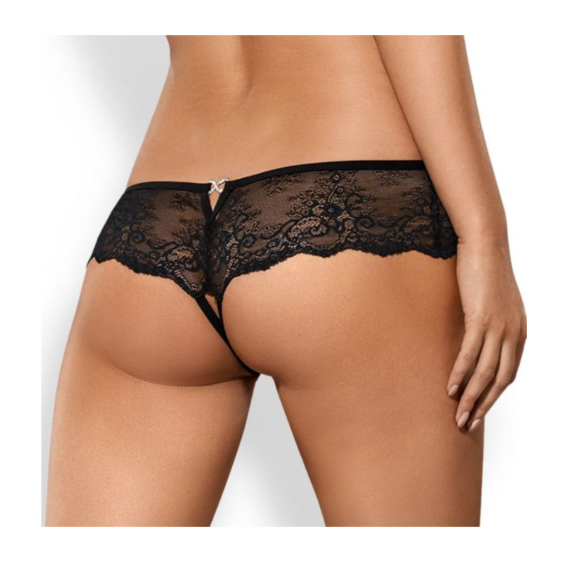 Los panties Merossa de la colección Obsessive son una pieza exquisita diseñada para resaltar tu sensualidad y elegancia. Con una abertura seductora y detallados bordados florales en un elegante color negro, estos panties son ideales para momentos íntimos especiales. Un detalle brillante en la parte trasera añade un toque de glamour y sofisticación.