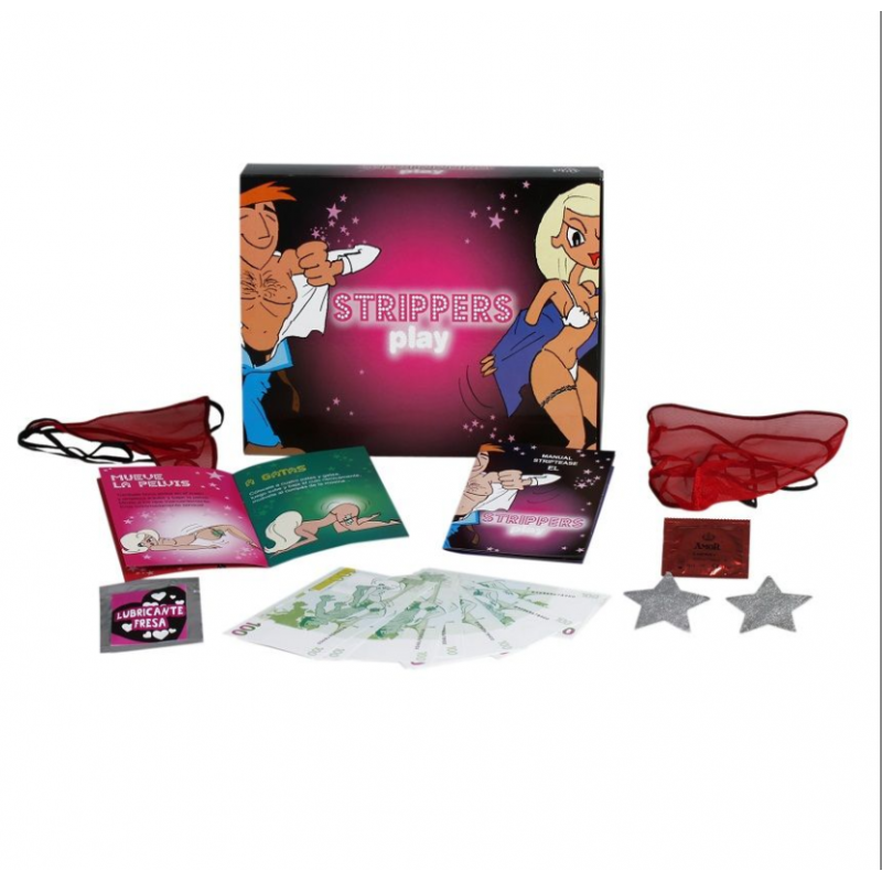 Strippers Play es un juego didáctico, divertido y extremadamente erótico, ideal para parejas o amigos que quieran explorar su sensualidad y aprender el arte del striptease. El contenido del juego incluye: